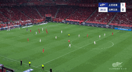 第28分钟,主场作战的上海海港终于敲开对手大门!海港后场出球,刘若钒接队友斜传球后从右路高速突进,随后他机敏观察队友跑位!送出精妙直塞找到莱昂纳多,二者完成一次精妙的直传斜插!最终后者利用速度越过对方门将马镇,爆射得手!!!海港1-0取得领先!!!
