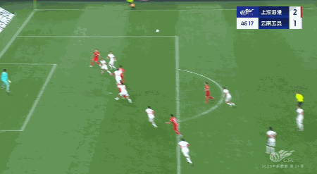 此后不久,玉昆就立刻予以回应。第62分钟,玉昆开出右侧角球,门前张琳芃头球解围不远,球来到后点无人盯防的玉昆球员唐淼脚下,后者直接小角度近角凌空抽射破门,帮助玉昆2-4扳回一城。
